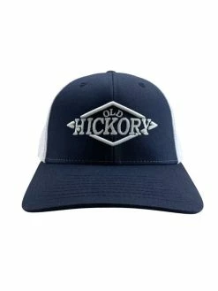 Stylish headwear from Old Hickory. These caps feature a navy bill and front panel with the Old Hickory logo embroidered on the front and white mesh FlexFit back. Available in a mid-pro crown flex fit design (available in S/M and L/XL).