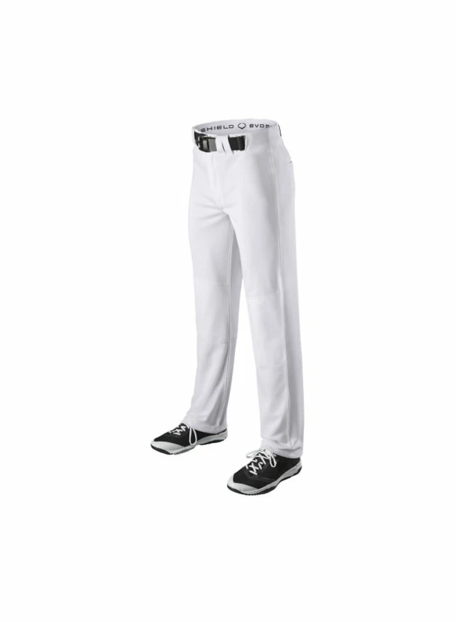Move without restriction all over the diamond with the Youth EvoShield Salute Open Bottom Pant. Featuring a 100% polyester double knit design, the hemmed open bottom is a classic look for a hard-nosed young ballplayer. These pants also have two set-in back pockets, double-layered knees and an EvoShield elastic gripper waistband, giving you everything you need to feel and look great while making plays.